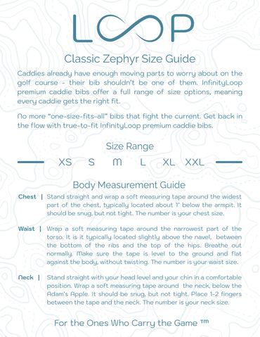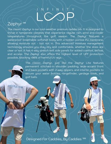 The Classic Zephyr ™ is a first-of-its-kind, premium caddie bib designed and engineered to tackle the most crucial needs for all levels of caddies.