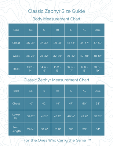 The Classic Zephyr™ uses fabric with high protection from harmful UV rays. Our fabrics are rated at UPF 50+, meaning they block 97.5% or more of UV Radiation Exposure.